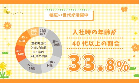 職場環境 【従業員構成】 当社社員の入社時の平均年齢は【34.5歳】(2023年度) 自分自身の新しい人生を歩みたい方を大同生命は応援します! 「家庭に専念していたが復職したい」 「子育てと両立し働きたい」 などの理由で入社される主婦・子育てママさんが多数います。 【この仕事を通して身に付くこと】 「働きやすさ」「長く勤めている女性の多さ」「年齢不問」という点に魅かれて入社した人が多数! 未経験でも活躍できている理由は、研修制度にあります。 ビジネスマナーや税務、マネジメントなど、年次・役職に応じて種類豊富にご用意。さらに、PCで視聴できるなど、個々人の必要に応じて学べる環境を整えています。 また、資格取得も推奨。「ファイナンシャル・プランニング技能士」3級はプランナーの6割が取得済です。