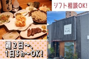 ディナーSTAFF募集★『平日のみ』とか『土日祝のみ』だけでも大丈夫! 『手打ちそば かけはし』は 地元で人気のおしゃれなお蕎麦屋さんです! 何でも相談できる優しい店長が しっかりサポートするので安心して働けます! <注目POINT> *夜のみOK!学校や他の仕事と両立可能◎ *シフト相談OK *経験者優遇 *未経験も大歓迎♪(はじめてバイトもOK!) *昇給あり! *年齢問いません *ブランクがある方もOK!