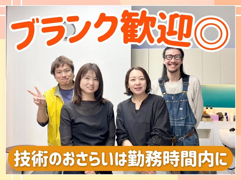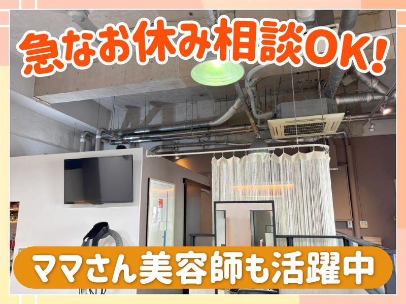 職場環境 \子育て世代が多数活躍中!/ 家庭などへの理解もバッチリ! みんなで協力し合いながら働いています◎ ・スタッフの年齢層:30代・40代 ・人数:スタイリスト1名、アシスタント2名、オーナー1名