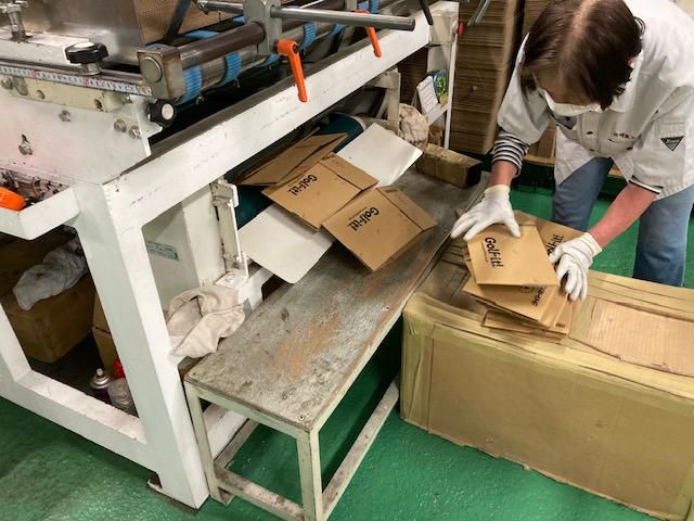 工場内での段ボールの加工補助スタッフ