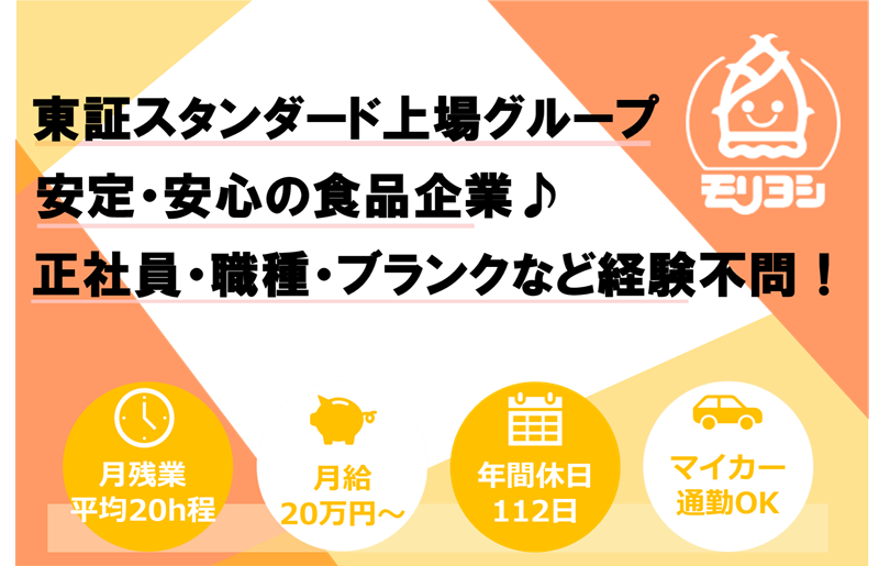 仕事内容 正社員デビューを応援♪ 新しいキャリアの一歩を、安定の上場グループ勤務!安心の環境で挑戦してみませんか? 東証スタンダード上場の「KOZOホールディングス株式会社(旧:小僧寿し)」のグループ企業としてスーパーマーケットを中心にお惣菜の提案をしている当社。一人暮らし・共働き世帯の増加に伴う中食市場の拡大の影響もあって、着実に事業成長を続けています。 今回あなたにお任せしたいのは、そんな当社の製造業務。実際においしいお惣菜を調理したり機械パック詰めをしたりと、さまざまな役割をお願いします。 安定の本社勤務のため、ずっと群馬で働ける点も魅力。UIターンも歓迎しています。 《この求人のPOINT》 ★体制強化のために新たなメンバーを増員募集 ★上場企業グループの一員として安定経営を継続 ★お惣菜などの提案を手掛け、スーパーマーケットとも豊富な取引実績を保有 《仕事内容》 手作り惣菜製造における ■調理工程業務(原料供給、味付け作業、加熱殺菌) ■加工工程業務(盛り付け作業、パック詰め、ピッキング) ■その他製造作業、及び洗浄・清掃作業全般 ■ラインオペレーション、ラインマネジメント、製造計画、生産管理 など 《採用担当よりメッセージ》 「ずっと群馬で過ごしたい」といった長期的なライフプランやキャリアアップの計画も、全力でサポートしたいと考えています。少しでも興味をお持ちいただけたら、まずは応募してください。