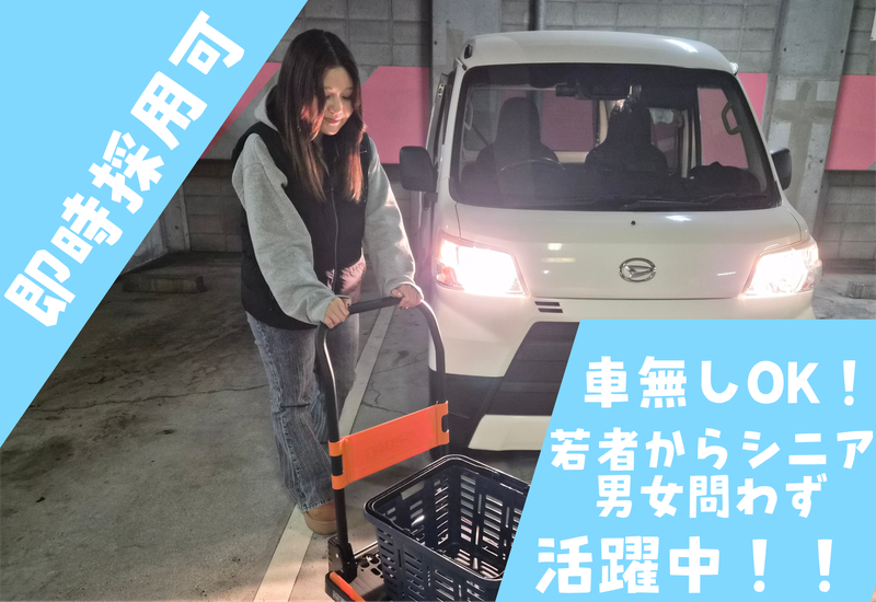 求める人材: 【必須条件】 *普通自動車免許(AT限定OK)をお持ちの方 【歓迎条件】 ・今よりもっと稼ぎたい方! ・プライベート優先で働きたい方! ・面倒な人間関係に悩みたくない方! ・自由な働き方を求めている方! 必要なのは誠実な気持ちだけ!ご友人を誘っての応募も大歓迎! ご応募を心よりお待ちしております⭐
