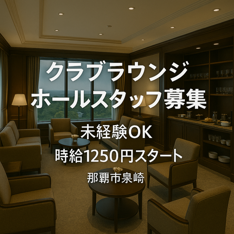 仕事内容 【PR本文】 1、新規リニューアルしたホテル内のホールスタッフ募集! 2、未経験OK・フリーター歓迎!サービススキルが身につきます♪ 3、高時給×長期安定勤務OK!昇給・手当も充実◎しっかり稼げます! 4、年末年始手当あり・残業代も支給!頑張りがしっかり評価されます。 5、プライベートも大切にしながら働けます。 【勤務地】 沖縄ハーバービューホテル 【仕事内容】 クラブラウンジのホールスタッフ! 未経験の方も安心してスタートできる充実のサポート体制あり◎ <主な業務内容> ・お客様のご案内 ・料理・ドリンクの補充 ・バッシング(食器・グラス等の下げ作業) ・店内清掃、準備作業 【ここがポイント】 ◆未経験OK!フリーター・主婦(夫)歓迎! ◆ラグジュアリーホテル内のおしゃれなラウンジで働けます。 ◆接客マナーが学べる環境です。 ◆シフト相談OK・残業少なめ!ライフスタイルに合わせて無理なく勤務可能◎ ・フリーター歓迎/20〜40代活躍中 ・接客が好きな方、人と接することが好きな方歓迎 ・長期勤務希望の方歓迎 <手当も充実!> 深夜手当や残業代はもちろん、年末年始には年末年始手当も支給します。 能力に応じて昇給もあるので、長く働きたい方にもおすすめです。