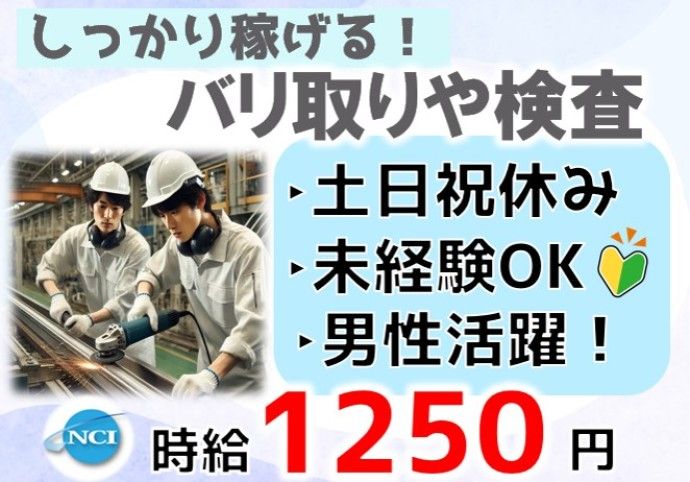 PR・職場情報 =====ここがポイント==== ■嬉しい土日祝休み! ■高時給1250円で安定収入! ■長期安定でしっかり働ける! ■2人1組の作業なので安心◎ ■20~40代の男性活躍中! ==================== ▼工場の目の前にコンビニあり!!お昼ご飯の買い出しもラクラク♪ ▼安心のフォロー体制▼ 就業してからも当社営業スタッフがしっかりフォローしますので、派遣が初めての方や未経験のお仕事に不安のある方も安心してお勤めいただけます!! ◎お仕事内容のお問合せだけでもお気軽にどうぞ!! 求人の特徴 【お仕事開始までの流れ】 STEP1: 営業社員との面談、登録 STEP2: 職場見学 STEP3: 入社書類取り交わし STEP4: お仕事開始 ※平日18時以降の面談やオンライン対応も可能です。ご希望の方は遠慮なくお問い合わせください! - この求人以外に派遣・バイト・アルバイト・パートや軽作業、製造、事務 のお仕事に興味のある方、短時間、短期・長期歓迎です。 長岡市、小千谷市、見附市、三条市、燕市、柏崎市でお仕事をお探しの方、 未経験、ハローワークでお探しの方もお問い合わせください。 - 〒940-2026 新潟県長岡市堺東町37-1 高野不動産堺ビル205 株式会社 NCI 長岡支店 TEL:0258-84-7800 FAX:0258-84-7814 freedial:0120-78-2345 (※お電話にてご応募の際は「求人サイトを見て」とお伝えください!) 一般労働者派遣事業許可番号:派07-300732 職業紹介事業許可番号:07-ユ-300310 求人ポイント 高収入・高月給,交通費支給,即日勤務OK,主婦・主夫歓迎,長期,フリーター歓迎,バイク通勤OK,給料前払いOK,学歴不問,車通勤OK,残業月20時間以内,平日のみOK,未経験者歓迎,リモート面接OK,社会保険完備,制服貸与,ブランクOK,育休制度あり,U・Iターン歓迎,家庭都合休OK,禁煙・分煙,長期休暇あり,40代以上応募可,産休制度あり,週5からOK,産休・育休取得実績あり,固定時間制