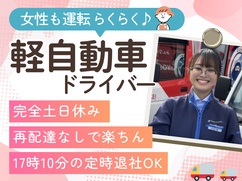 仕事内容 _____________ ヨシケイのお仕事のポイント  ̄ ̄ ̄ ̄ ̄ ̄ ̄ ̄ ̄ ̄ ̄ ̄ ̄ ★育休復帰率90%以上! 子育てママ(パパ)さんが働きやすい 職場・福利厚生を整えているので、 子育て世代のお母さんが中心に活躍中です◎ ★完全土日休み!年間休日は120日! ※年始休暇やGW、お盆などもお休みです! ※年間休日は115日+計画年休5日 ★オートマ軽自動車での配達 普通免許(AT限定可)だけで始められて、 軽自動車なので運転が心配な方も安心♪ ★日勤固定!17時10分で定時退社OK これまでの不規則な勤務や土日出勤を避け、 ワークライフバランスを改善したい方◎ ★まずは見学して説明を聞きたい!もOK ご希望の方はお電話(0120-377-714)まで。 そのまま面接選考の調整も可能なので、 ご希望される場合は履歴書をご準備ください! ______________ 宅配・販売スタッフの仕事内容  ̄ ̄ ̄ ̄ ̄ ̄ ̄ ̄ ̄ ̄ ̄ ̄ ̄ ̄ 軽自動車で夕食材料セット(ミールキット)を お客様のご自宅に配達していただくお仕事です。 食材はヨシケイの専用BOXで配達し、 次回の配達時に前回のBOXを回収します。 なので、再配達でバタバタすることもなし! 新しく注文を受けたり、集金・事務などもありますが、 最初は先輩の車に同乗しながら仕事を見学し、 皆さんの運転にも先輩が同行していきます。 独り立ち後も事務所での休憩時間に みんなで雑談しながら聞いたりできるので、 未経験の方でも安心してください。 また、商品案内として 新しいお客様へのチラシ配布や 既存のお客様への商品の ご紹介をお願いします。 既存のお客様の相談にのったり、 生活にあった食事の提案をしたり、 ただ配達するだけではないところがやりがいポイント! 人との会話を楽しんだり、「いつもありがと~」 という言葉でやる気が出るタイプの方にピッタリです。 「自分の生活にあった働き方はしたいけど ただこなすだけの仕事は飽きるしなあ…」 そんな思いで仕事探しをしている方は、 ぜひ一度見学にきてみてください! ________ こんな方が活躍中  ̄ ̄ ̄ ̄ ̄ ̄ ̄ ̄ ★20~40代の女性スタッフが中心に活躍中! 産休・育休制度を利用し、復帰率も90%以上。 産前産後で仕事を探す不安が少ないことや、 ご自身・子どもの体調が理由のお休み(早退)も スタッフのほとんどが女性なこともあり、 会社ぐるみでサポートしあえる環境です。 ___________ 別の働き方の選択もあり  ̄ ̄ ̄ ̄ ̄ ̄ ̄ ̄ ̄ ̄ ̄ ●もっと高収入/頑張った分だけ稼ぎたい ●時間的柔軟性がある など 【業務委託で働く】という 選択肢もあり!求人募集中! お気軽に問い合わせを♪