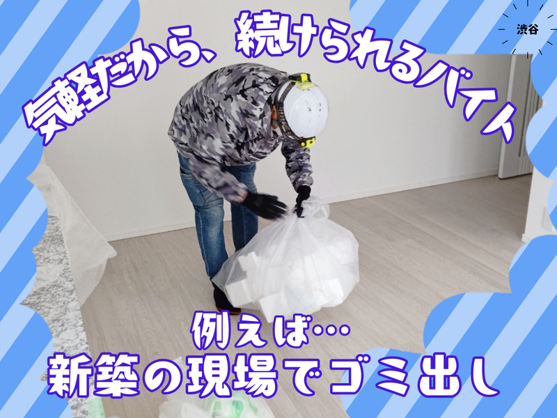 仕事内容 建築現場で職人さんのサポート・お手伝い、資材運搬、搬入搬出、清掃などをお願いします。 ____________ ◆電話 問い合わせ◆ 03-5456-9366 ―――――――――――― ◇◆◇◆◇◆◇◆◇◆◇◆◇◆◇◆◇◆◇◆ *10名以上の大量採用&大量面接予定!! *日払い・週払い・単発・短期OK *入社祝い金制度あり! *各現場直行直帰OK!最短即日勤務可能! *早く終わっても日給全額保証します!! ◇◆◇◆◇◆◇◆◇◆◇◆◇◆◇◆◇◆◇◆ 【早く終わっても日給全額保証】  ̄ ̄ ̄ ̄ ̄ ̄ ̄ ̄ ̄ ̄ ̄ ̄ ̄ ̄ ̄ ̄ ̄ 1時間で終わっても、午前中で終わっても日給全額保証します! 【誰でもできる簡単な軽作業】  ̄ ̄ ̄ ̄ ̄ ̄ ̄ ̄ ̄ ̄ ̄ ̄ ̄ ̄ ̄ ̄ ̄ 難しい仕事はありません。 未経験の方活躍中!即面接・即採用&即日勤務も可能です。 最初は必ず2名以上の現場からスタートなので未経験の方もご安心ください! ■YouTubeによる仕事の紹介■ 【https://youtu.be/k3f6KVnIsJE】 上記URLをコピーしてお使いください! 【10名以上の大募集!】  ̄ ̄ ̄ ̄ ̄ ̄ ̄ ̄ ̄ ̄ ̄ ̄ ̄ ̄ ̄ ̄ ̄ 経験問わず、「すぐに働きたい方」大歓迎!勤務翌日に日払いも可。 急な出費も問題なし!まずはお気軽にご応募ください。 【当社のスタッフをご紹介!】  ̄ ̄ ̄ ̄ ̄ ̄ ̄ ̄ ̄ ̄ ̄ ̄ ̄ ̄ ̄ ̄ ̄ 40代の男性は当社で生計を立てており、他のバイトは一切しておりません。 それくらい、安定して稼ぐことができます! コンスタントに入れる方には固定の現場をご案内。 ご自身の希望日に入りたい方にはそのタイミングで合う現場をご案内します。 【1日の流れ】  ̄ ̄ ̄ ̄ ̄ ̄ ̄ ̄ ̄ ̄ ̄ ̄ ̄ ̄ ̄ ̄ ̄ 08:00 勤務開始(現場に直行) 10:00 休憩 12:00 お昼休み 13:00 勤務再開 15:00 休憩 17:00 勤務終了(現場から直帰) 週1日~/単発/短期/長期/週5日フルなど、働き方の相談OK! 資格取得支援制度を活用して、未経験でも技術を身につけられます。