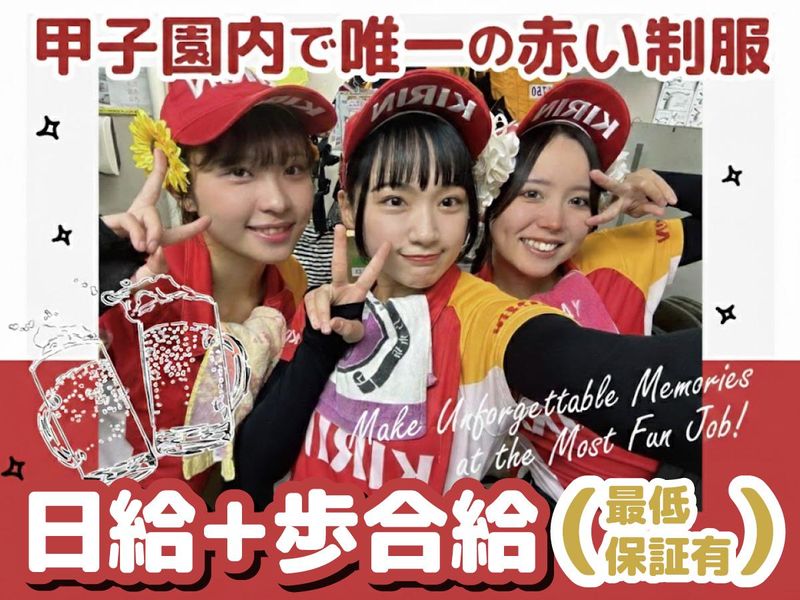 仕事内容 【甲子園球場唯一の「赤い制服」で、キリンビールを届けるお仕事】 プロ野球や高校野球が開催される熱狂の甲子園球場。 そのスタンドを華やかに彩るのがあなたのミッションです。 具体的な流れ ビールの売り子さん タンクを背負い、笑顔でスタンドを巡回。 「お疲れ様!」「1杯ちょうだい!」というお客様の声に応え、目の前で最高の1杯を注ぎます。 ここがポイント 甲子園でキリンビールを扱えるのは株式会社ファインだけ。 つまり、「あの赤い制服の子」として親しまれるのは、あなただけの特権です! 未経験でも安心 研修の一環として、神戸三田のキリンビール工場見学を実施! 「自分が何を売っているか」を楽しく学び、自信を持ってスタートできます。 ■ メリット 圧倒的な「高収入」を実現! 基本給に加え、売れた本数に応じた歩合給を支給。 1年目のスタッフでも1日200杯(日収15,000円以上)売る猛者も! 「短期間で100万円貯めて海外へ」「推しに全力を注ぐ」そんな夢がここで叶います。 「一生モノの仲間」ができるイベント満載 同期はみんな同じスタート。 仕事以外でもBBQ、スポーツ大会、豪華な表彰式など、大学生活だけでは味わえない「青春」が凝縮されています。 応募ハードルは「超」低め! 履歴書不要&面接1回! さらに、担当者があなたの大学の近くや、最寄りのカフェまで伺う「出張面接」を実施。 手ぶらで、思い立ったその日に応募可能です。 ■入社後の流れ まずは新人研修の一環として、神戸三田にあるキリンビール工場を見学! 「自分が売るビールがどのように作られているか」を楽しく学び、自信を持って提供できるようになります。 現場でも先輩がイチから教えるので、未経験の方も安心です。