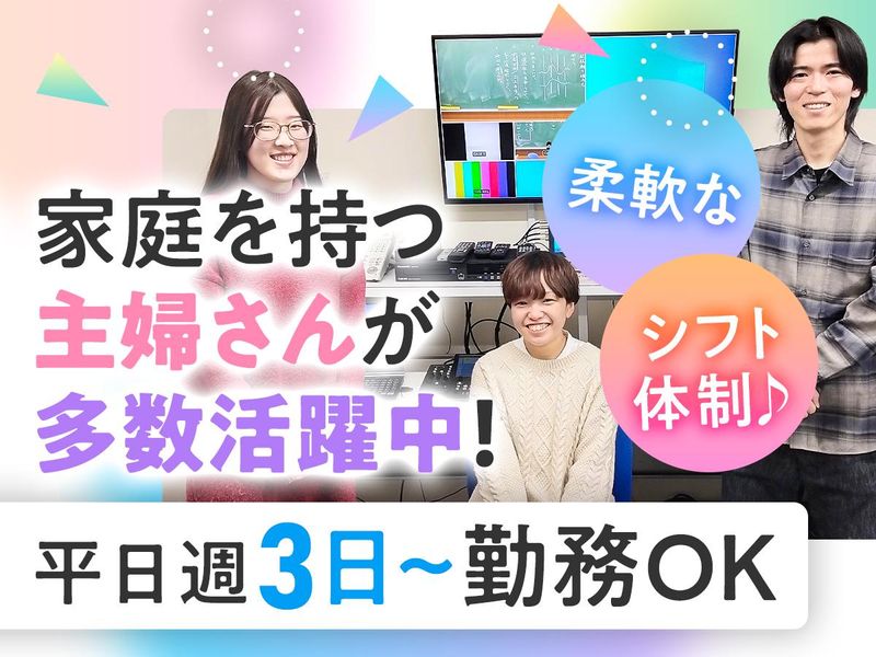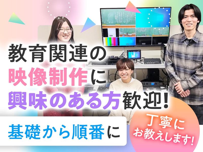 求めている人材 <専門・短大卒以上> <社会人経験必須!年数不問> ⭐映像収録・編集経験者優遇 ⭐教育関連の映像制作に興味のある方歓迎 ⭐運用管理・事務作業が可能な方も歓迎 <こんな方におすすめ♪> ⭐教育事業への関心が高い方 ⭐教育の映像制作に興味がある方 きめ細かい研修プログラムで基礎から順番に丁寧にお教えします。 未経験からスタートしたスタッフも多数在籍!