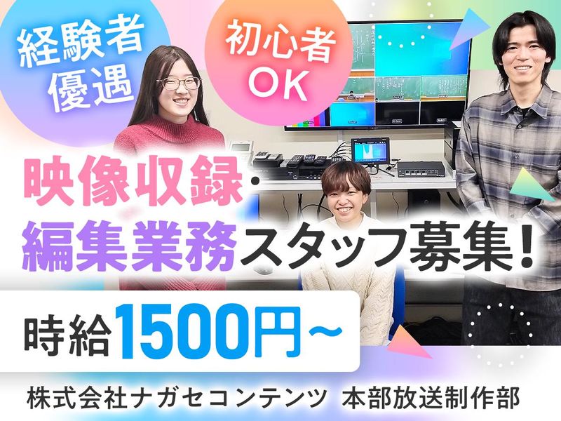 仕事内容 ✨教育コンテンツの収録・編集全般✨ 教育に興味があって映像制作をしたい人 ぜひ一緒に働きましょう! ☆~~~~~~~~~~~~~~~☆ ⭐具体的な仕事内容 東進ハイスクール、四谷大塚の授業コンテンツなど、教育コンテンツの収録・編集業務や運用業務をお願いします。 未経験からでも始められます。 きめ細かい研修プログラムを用意しており基礎から順番に丁寧にお教えします! ☆~~~~~~~~~~~~~~~☆ ⭐求人の魅力ポイントについて [1]教育コンテンツの制作で社会に貢献! [2]高時給&ライフスタイルに合わせた柔軟な働き方! 時給1500円~2000円以上の高時給でしっかり稼げます。 さらに、柔軟なシフト制だからダブルワークやプライベートと両立しやすい職場環境です。 [3]未経験でも安心のサポート体制&職場環境◎ 充実した研修制度があり、基礎から丁寧に指導します。 未経験からスタートしたスタッフも多数活躍中! 20代~40代の方を中心に和気あいあいとした親しみやすい雰囲気です♪
