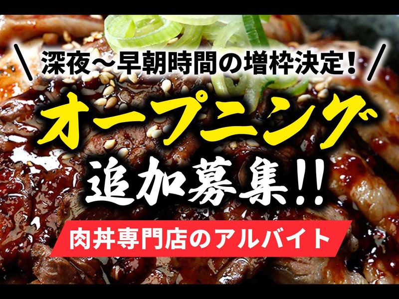 仕事内容 / お客様からの多数の声をいただき、 この度、深夜~早朝枠の営業決定!! \ それに伴い、 \\☆オープニングスタッフ募集!! // 11月下旬より勤務開始!! ━━━【メリット多数】━━━ ★新規メンバーと働ける ★魅力的な高時給 ★日中に自由な時間が増える ★話題の人気店で働ける ━━━━━━━━━━━━━━━ 肉丼が絶品で超人気♪ 注目のお店で働こう! お肉好き、集まれ~!! ――――――――――――――― <お仕事内容> 話題の「肉丼専門店」! ホール・キッチンをお任せします。 【ホール】 ・お客様のご案内 ・注文のお伺い ・料理のご提供 ・食器の片付けなど ★食券制なのでオーダー取りやレジ業務も無し♪ 【キッチン】 ・タレとスープの仕込 ・野菜のカット ・食洗器での食器洗浄 ・簡単なお肉の仕分け ・料理の盛り付けなど ★ゆくゆく慣れてきたらお肉の調理もお任せします♪ ★簡単なお仕事が中心ですので、ご安心下さい♪ ―――――――――――――――― 未経験でもOK! 雰囲気も良く、すぐに慣れますよ♪ 絶品のまかないもあり! 満腹になるし、おいしすぎて スタッフからも人気◎ 【参考URL】 https://nikudonsenmonten.com/