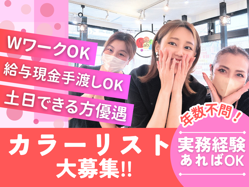 仕事内容 ☕週1日~、1日4時間~OK!土日歓迎✨ ☕ブランク明けの方もしっかりサポート! ☕無駄な残業なし◎プライベート充実✨ ☕雰囲気が気になる方は職場見学もOK! ――――――――――――――――――― カラー・トリートメント専門店にて 【カラーリスト】業務をお任せします! ✅お客様のご案内・受付対応 ✅カウンセリング ✅ヘアカラーの塗布(リタッチが8割) ✅シャンプー ✅トリートメントの施術(髪質改善など) ✅電話応対・予約管理 ✅店内の清掃や備品管理 など。 ⭐仕上げやドライ、ブローはなし! ⭐余計な残業なし! ⭐ノルマなし! ⭐スキルアップもしっかりサポート! 20代~50代のお客様が多く来店される カラー・トリートメント専門店での勤務! 穏やかで親しみやすい方多く 安心して施術に集中することができます。 ➰お客様層は女性/9:男性/1 ➰リピート率は【89.2%】✨ ――――――――――――――――――― ✨「美容業界=休めない」 そんなイメージを変えたい ✨ ⏩決まった休みではなく希望申請制 ⏩3連休取得者多数! ⏩最大8連休まで取得可能◎ ⏩夏季/冬季休暇あり ⏩シフトは月1回提出で予定も立てやすい◎ 育休取得もまずはご相談ください! ――――――――――――――――――― お客様に『笑顔・喜び・感動・癒し』を 届けられるお店を目指しています! 代表は常にスタッフを想い、 ストレスフリー/笑顔/自分らしさを お店のキーワードとしており 【楽しく働ける、輝ける環境作り】を 心掛けて運営を行っています。 そのため、 大手にはない働きやすさと ストレスの少ない職場を実現。 完璧さよりも、 人とのつながりを大切にしています。 意見を発しやすい風通しの良い雰囲気で スタッフ同士が理解し合い協力し合って 働くことができています♪ ブランク明けでの復帰も全力でサポート しており、在籍スタッフの8割が 子育てと両立するママさんです⭐ ――――――――――――――――――― AIには代われない、 人とのつながりを大事にするお仕事。 お客様との会話や心の通った接客は、 どんな時代でもなくならない価値。 だからこそ、安定して長く働ける仕事です。 「美容の仕事が好き」その気持ちを、 ずっと大切に… 自分のペースに合わせて 無理のない働き方で、 リラックスしながら働いてみませんか☘
