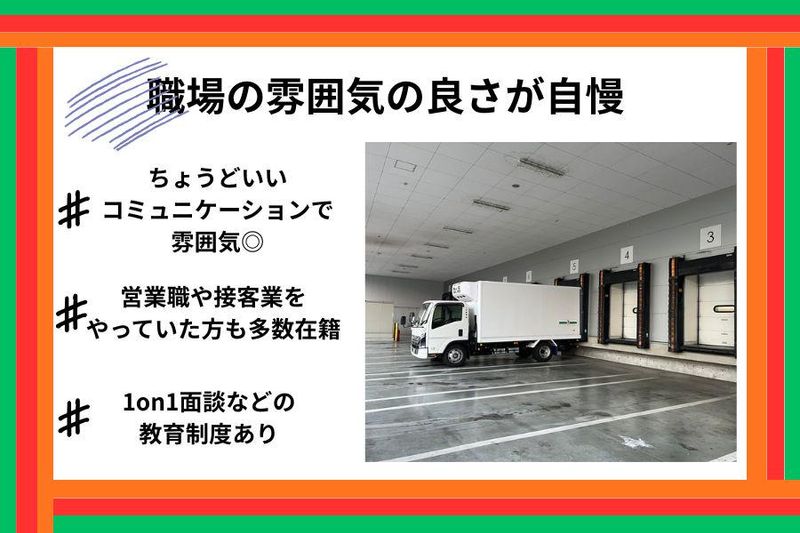 求めている人材 私たちが求めるのは、 「安全運転を第一に、 コツコツ安定して働ける方」です! 決まったルートで、 慣れれば安心。 ドライバー経験がなくても、 同乗研修でサポートします! 【こんな方にピッタリ!】 運転が好きな方 安定して働きたい方 丁寧に対応できる方 時間を守れる方 チームワークを大切にできる方 【活かせる経験・資格】 中型免許・準中型免許(AT限定可) 2t/4tトラック、軽貨物ドライバー経験者 ルート配送、サービスドライバー経験者 運送業界経験者 ブランクあり、異業種からの転職も歓迎! 【一緒に働く仲間】 幅広い世代が活躍中! 元営業職や接客業出身者も多く、 「黙々と働きたい」「安定した生活を送りたい」 という理由で入社しています。