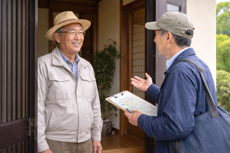 仕事内容: 2025年より事業拡大中。 現在メンバー増員につき、2名追加募集いたします。 再エネ需要拡大に伴い、 2026年以降さらに案件が増加予定。 今がタイミングです。 ■ この仕事について 「年金に少しプラスしたい」 「地元で無理なく働きたい」 「体力的にきつい仕事は避けたい」 そんな方に向いているお仕事です。 私たちは、未利用地を活用し、 太陽光発電事業を行っている開発会社です。 お願いしたいのは、 土地所有者様宅へ訪問し、お話ししていただくことがメインになります。 ■ 仕事内容 * 指定された土地の現地確認 * 地主様への事業内容のご説明 * 簡単なヒアリング * 承諾書の取得 * 結果の報告 ※1件あたり10〜15分程度 ※高度な契約交渉はありません。 「売り込む仕事」ではありません。 「もし売却をご検討される場合、当社にご相談いただけますか?」とお話をするお仕事です。 ※事業の説明と、同意の確認が中心です。