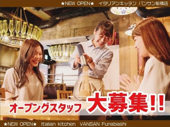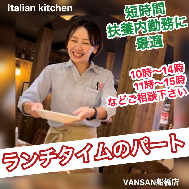仕事内容 <✅お仕事内容> Italian Kitchen VANSAN船橋店 【ホールのお仕事】 ホールスタッフとして、接客業務をお願いします。 ・お客様のご案内や接遇全般 ・料理やドリンクの配膳、提供 ・レジなどのお会計対応(セルフレジ有) ・お席の片づけやリセット、店内の清掃 など… 【キッチンのお仕事】 キッチンスタッフとして、調理業務を中心にお願いします。 ・オープンキッチンです ・メニューの調理、盛り付け ・食器や調理器具の洗浄、後片付け、厨房の清掃 など… モバイルオーダーシステムを導入しているので、難しい注文受けなどはありません! 未経験の方には先輩スタッフが丁寧に仕事を教えます◎ できることからお任せしていくので、自分のペースで成長していきましょう!