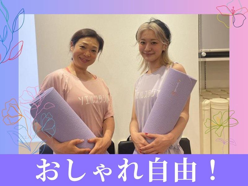 求めている人材 ⸜⸜✨3月下旬オープン✨⸝⸝ ✅経験・学歴不問 ✅資格必要なし ⏩20代~50代まで幅広く活躍中☺ 研修で自分磨きも叶えましょう♪ 経験者の方は、 さらなるスキルアップも目指せます! - -*- - -*- - -*- - -*- - -*- - -*- - -*- - -*- - ✅こんな方大歓迎! ◆未経験から挑戦したい ◆ブランクがある ◆新しいことを学ぶのが好き ◆コミュニケーションを大切に働きたい ◆働きながらスキルを身に付けたい ◆腰を据えて働きたい ◆ヨガやピラティスなどの資格を持っている ◆土日夜間働ける方 - -*- - -*- - -*- - -*- - -*- - -*- - -*- - -*- - ⭐☆⭐ SOELUについて ⭐☆⭐ 女性専用フィットネス SOELU. シアターレッスンやマシンピラティス、 よもぎ蒸しなどのサービスを受け放題の 女性専用スタジオです♪ ⏩ヨガ・ピラティス・トレーニング・ ストレッチなど“100種類以上”の レッスンを展開! ⏩スタジオレッスンに加え、 おうちで好きなときに受講できる オンラインレッスンあり♪ 性別の条件と理由:女性限定(風紀上)