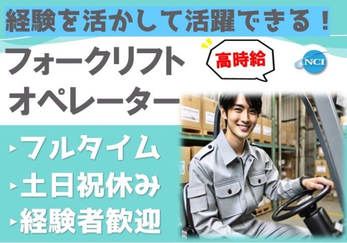 フォークリフト免許・経験必須!即日就業◎高時給でしっかり稼げる!8:20~17:30/土日祝休み♪
