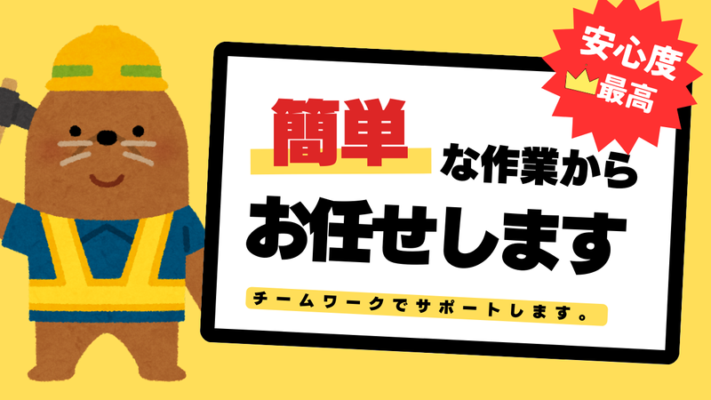 求めている人材 \一緒に働く仲間を大募集!/ \ここがポイント/ •未経験OK!サポート体制ばっちり♪ •チームワークが大切! みんなで楽しく働ける環境です。 •安全第一! ✅未経験OK ✅フリーターOK ✅中卒高卒OK ✅資格不問 ✅車の免許お持ちの方も歓迎 ✅短期間収入で働きたい方もまずはご相談OK! ✅過去の職務経歴・学歴一切不問! 【最近では下記の皆さんから応募入ってます】 コンビニスタッフ 販売接客サービス業 中高年 居酒屋のホールスタッフ 昔やっていてブランクある方 介護福祉 交通誘導・警備員 引越し作業 倉庫作業 仕分ピッキング 玉掛技能者 スポーツジムのインストラクター 働きながら筋トレしたい方 収入UPしたい理由で頑張っている方多数!