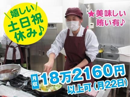 仕事内容 \働く方に楽しい食事を/ 安心の大手企業内!社員専用食堂♪ 【勤務地】駅チカ楽々♪ 各線/東京駅 八重洲口歩1分 (千代田区丸の内1丁目) ◎調理スタッフさん募集! (調理経験等活かせます) <ここもポイント> ◆1日60~70食程度の昼食調理♪ ☆☆定食1種類のみ☆☆ ◆ゆとりの勤務も人気! (月収/18万2160円以上可) 【具体的には】 ・献立表に沿った昼食等の調理 (日替わり定食1種類) ・仕込み、盛付け、提供 ・簡単な事務作業など 【勤務時間・曜日】 8:30~15:30/休1h・実6h ★月~金曜/週5日(祝休み) 【休日・休暇】 完全週休2日制(土・日・祝) GW・年末年始・他企業カレンダー ★年間休日120日以上でオフも充実♪ (お子様のいらっしゃる方にも大好評) 【社員食堂で働くメリット】 ✅働き易く安定した勤務時間♪ 社員食堂は企業の営業時間等に合わせて運営されており、中でも平日のランチタイムが中心です♪ ✅お客様は常連(社員やスタッフさん等) 社員食堂のお客様はその企業で働く社員やスタッフさんがほとんどなので、とてもアットホームな環境です♪笑顔いっぱいの「美味しかったよ~」「ごちそうさま」も大きなやりがいです♪ ✅嬉しい食事補助(美味しい賄い)♪ 昼食代節約&お弁当の手間も不要♪ ✅ご家庭での調理にも役立つスキル 調理方法や衛生管理の知識もゲット! ✅他、飲食業等とは異なる休日♪ 各企業等の休日と合わせる社員食堂がほとんどなので、土・日・祝日やGW・年末年始休暇もあるのも人気の理由です。 【当社概要】 ・企業事業所給食/首都圏約200店舗! ・ISO14001取得
