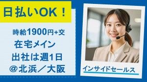 インフォメーション 出社は週1回*北浜or淀屋橋*土日祝休み ハイクラス層に特化した転職求人サイトのご提案発信のお仕事! 中途採用をメインで採用している企業に向けたお電話発信、アポイント調整をおまかせします! 採用難企業に対して、本サービスのニーズを訴求していくのも“肝”にもなるお仕事です! 採用まわりにご興味がある方も必見! 在宅頻度高めで、ムリなくガッチリ稼げちゃいます! 少しでも気になる方、今すぐご応募お待ちしております! *レゾナゲートは来社不要!WEB登録可能です! 給与日払い制度「Res給」&週払い制度「前給」あり!スマホでできちゃう無料PC講座も多数実施中* アピールポイント 株式会社レゾナゲートの求人を見ていただきありがとうございます! ◆当社の特徴1 WEBで完結・来社不要! ◆当社の特徴2 高水準・高時給のお給料&待遇! ◆当社の特徴3 最短翌日入金! 日払い制度「Res給」・週払い制度「前給」あり! ◆当社の特徴4 あなたもご家族も安心!健診サポート! 株式会社レゾナゲートでは 一般事務やデータ入力のお仕事だけでなく コールセンターでのテレフォンオペレーターや WEBディレクター、デザイン制作などクリエイティブ系のお仕事まで幅広くご紹介ができます! 「週2~、週3~で働きたいけどどうだろう・・」 「アルバイトやパートの経験しかないから不安・・・」 「ブランクあるけどどうだろう・・・」 ぜ~~んぶお気になさらず! あなたに合ったお仕事をご紹介します! ハローワークでお仕事をお探し中の方も こんな仕事ないかな?という方も お気軽にお問い合わせください!