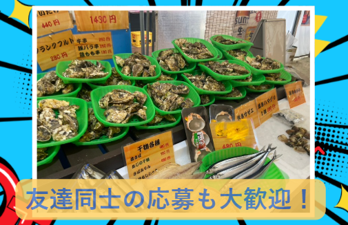 仕事内容 ☆期間限定・1~2ヶ月の短期OK! ☆学生・主婦活躍中! ☆嬉しい食事補助あり! ☆高校生もOK! ☆車・バイク通勤OK! ・・・・・・・・・・・・・・・ 【仕事内容】 オーダー受けや片付け、料理・ドリンク提供を 中心としたホール業務全般をお任せ! 難しい仕事はありません。 ※昨年は昼は主婦・夜や土日は学生が活躍 ⭐10代~20代の男女スタッフ活躍中⭐ ⭐今からの時期に盛り上がる職場⭐ 海の新鮮な幸を提供している 【牡蠣小屋 恵比寿丸】 スタッフもお客様もワイワイにぎやか! お客様との関りも多いです◎ どんな人でもスグに馴染める、 気さくな店長や頼れる仲間が あなたを待っています! 定着の良さの理由は 【みんな仲が良いから♪】 ムードメーカー的存在、リーダー的存在、 おもてなしが得意な子、など あなたの強みを活かして働ける環境です。 分からないこと、疑問に思ったことは、 気兼ねなく横にいる先輩に聞いてください★ みんなあなたに教えたくて ウズウズして待ってるんですから(笑) マニュアルもあるので、 すぐに仕事は覚えられますよ♪ ・・・・・・・・・・・・・・・ ⭐学生にうれしい食事補助つき!⭐ この時期ならではの、 海の新鮮な幸も一緒に楽しめるかも!? ⏰シフトは柔軟に対応可⏰ 予定も立てやすいです♪ 当店で働くみんなの希望を 出来るだけ考慮して シフトを作っていきたいと思っているので、 2週間ごとのシフト提出を フルに活用してくださいね★ 学生さんは、履修登録後の勤務もOK! 授業の状況を最大限考慮します。 ✨志望動機は何でもOK!✨ 下の□に一つでも当てはまれば お気軽にご応募ください □どうせ働くなら楽しいバイト先 □食事補助があると良いな~ □友達と一緒に働きたい □お洒落も大事、髪型・ピアス自由 □車・バイク通勤も可 働きやすい環境を心がけ、 今後も時代に合わせて 働き方改革を進めて参ります。