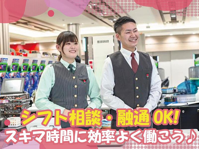 仕事内容 <<春の新アルバイトにピッタリ>> 出会いの季節、マルハンで新しい仲間とスタート! <パチンコ店でのカウンター業務> ・稼働分の前払い(申請から最短翌日払い)可能! ・初回500h勤務後ボーナス一律2万5000円支給、 2回目以降1万5000〜7万6000円支給(24年度実績) ・一定の基準を満たした元従業員が退職時の職位を 引き継いで再入社できるカムバック制度有! ・ドル箱の上げ下ろしがないスマートシステム導入! パチンコ大手「マルハン」で カウンタースタッフ大募集! <具体的には> ・賞品交換 ・品出し ・在庫管理 などのカウンター業務に加え 店内のご案内やパチンコ台、パチスロ台清掃 などのホール業務もお願いします。 先輩スタッフがしっかり丁寧に 指導するので安心してお仕事する事が出来ますよ。 幅広いお客様がいらっしゃるので コミュニケーション能力が高まります。 <大手だからこその安心感も◎> マルハンだからこその丁寧な教育制度、 上を目指せるキャリアアップ制度など サポート面も充実! 正社員を目指しながら長く安定して 働ける環境も自慢の一つです! <私生活と両立できる柔軟なシフト> シフトはスタッフと相談の上、決定します。 またサービス残業は一切認めておりませんし、 残業については予めお伝え頂ければ 柔軟に対応致しますので安心して下さいね! ※面接は店舗にて行います。 履歴書はご持参いただかなくて大丈夫です! ★当日は正面入口からお入りいただき、 スタッフにお気軽にお声がけください♪ 面接はリラックスした雰囲気で行いますので、 緊張せず、いつものあなたでお越しください☆ <インセンティブポイント制度> 従業員のシフトの貢献度に応じてポイントを付与し、 商品やサービスと交換できる報奨制度です。 旅行券、レストランの食事券、 家電製品(電子レンジ・ゲーム機など)、 ブランド品、松坂牛など、 約14,000点以上の商品と交換可能です! <スーパースター制度> お客様やスタッフが「感じが良かった!」と思うスタッフに投票。 その月に一番多く票を集めた人が「スーパースター」に選ばれ、 7回獲得すると会社から表彰されます! <マルハンサービスグランプリ西日本カンパニー大会> 接客が好き!得意!という方は、年に一度、西日本ナンバーワン スタッフを決める「サービスグランプリ」へぜひ挑戦してください!