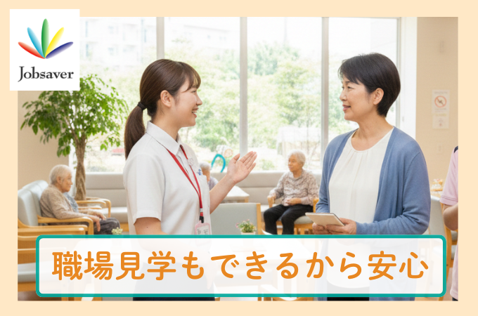 仕事内容 ☆朝7時から10時までの早朝介護のお仕事!!初めての介護の方も安心♪ ~安城市の介護のおしごと~ ユニット型特養での介護業務をお願いします。 午前のみのお仕事になります。 ~~お仕事内容(例)~~ ・朝の起床の介助 ・着替え介助 ・食事介助(朝食) ・口腔ケア \職場見学できます!/ 「職場の雰囲気や仕事内容を実際に見てから決めたいな…」という方には 職場見学をオススメしています♪弊社の専任サポーターも一緒に同行しますので 気になることや不安なことは遠慮なく相談してください◎ 【おすすめPOINT】 ■未経験・ブランクOK♪ ■資格取得支援あり♬ ■WワークOK! .・*・.・*・.・*・.・*・.・*・.・* ジョブセイバーではあなたに合ったお仕事を一緒に見つけるため、最初のヒアリングを大切にしております。 ★お仕事アドバイザーによる安心のサポート体制★ ★ピアス・ネイル・髪色自由 ★産休・育休取得実績多数 ★オンライン登録も好評実施中です! ★勤務地・勤務時間・就業日数ご相談ください ★扶養内勤務ご相談ください ★入社日相談可能!在職中の方もぜひご相談ください 〈ジョブセイバーで働くスタッフさんの声〉 「有給も取りやすいからプライベートも充実しています!」(Sさん 前職:接客業) 「妊活や育休も一緒に考えてくれたから安心して過ごせました!」(Yさん 前職:車関係) 「子どもが小さく働ける時間が限定される中、ピッタリなお仕事をご紹介いただきました!」(Aさん 前職:カフェ店員) ==================== ◆お仕事説明会のお知らせ◆ ==================== 「自分に合う求人があるか聞いてみたい」 「資格はあるけど、未経験で…大丈夫かな?」など 介護専門の担当者と1対1でお話しができます♪ お仕事に関する事、何でもご相談ください♪ 〇岡崎シビックセンター2階 集会室 *日付…3/26(木)、4/3(金)、 4/16(木)、4/22(水) *受付…9時~11時 *持ち物…一切なし!履歴書も不要です! *服装…普段着でお気軽に♪ 予約不要!お子さま連れも大歓迎◎ ==================== 【公式LINE】 https://lin.ee/latJZTN 「ジョブセイバー」をお友だち追加すると24時間お問い合わせできます★ 事業内容 人材派遣業(許可番号) 派23-300622 職業紹介(許可番号) 23-ュ-300327