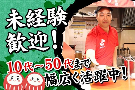 求めている人材 学歴や経験は一切問いません。 ✅未経験者歓迎 ✅アルバイト・パート未経験者歓迎 ✅フリーター歓迎 ✅大学生歓迎 ✅ハローワークで仕事探し中の方歓迎 ✅ミドル・シニア応援 ✅年齢不問 ✅アルバイトデビュー応援 他のアルバイトとの掛け持ちや WワークもOK! 皆さんお気軽にご応募ください! 【活かせる経験】 ☆居酒屋 アルバイト ☆カフェ アルバイト ☆喫茶店・カフェスタッフ ☆飲食店の調理補助 ☆ラーメン店 ホールスタッフ ☆その他レストランなどの ホール・キッチンスタッフ …etc. 10代・20代・30代・ 40代・50代・60代の 幅広い年代のスタッフが活躍中! 特に高校生&大学生~30代を中心に、 主婦(夫)さんや中高年のミドル・シニアなど 様々な方が活躍中です! 気さくで愉快なstaffが 沢山いますので、新人さんも スグに馴染んで楽しくやっています! カフェ・居酒屋・レストラン・ ファストフードなどで 飲食業界職の経験がある方や 接客販売職の経験がある方も活躍中です!