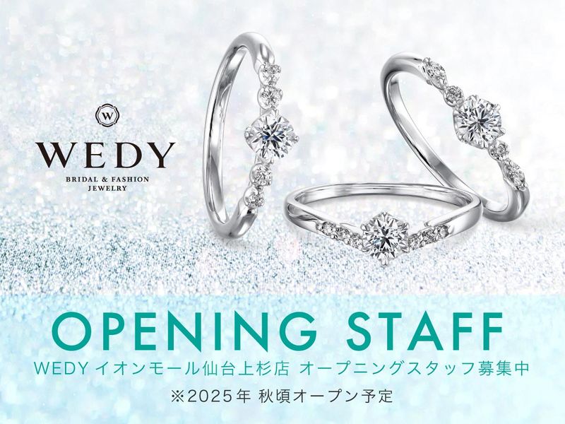 仕事内容 ――――――――――――――――― 【WEDY イオンモール仙台上杉店】 \2025年10月8日グランドオープン/ - *** ジュエリー販売員 *** ――――――――――――――――― 「WEDY」は結婚指輪や婚約指輪などの ブライダルジュエリーと ファッションジュエリーの専門店です。 お客様と一緒に「一生もののジュエリー」を お探しする販売員のお仕事をお任せします。 あわせて発注や電話対応等の 事務作業もお願いします。 【 この求人のポイント 】===== *既存店では女性社員多数活躍中♪ *販売ノルマなし! *ブランク、未経験者大歓迎! *既存スタッフ約3割子育て中★ *産休・育休復職率は現状100%♪ ================= ~お客様にとって忘れられない一生を~ お客様のお話をしっかり聞いて、 国内外の有名ブランドや オリジナルジュエリーの中から 個性やお好みに合わせたピッタリな ジュエリーをご提案できるよう、 「お客様のために行動すること」を 大切にしています。 接客以外にも、 店舗の運営に関わる事務的な仕事から、 店内のディスプレイまで、 幅広い業務からスキルを身につけられます! 販売ノルマはありません! * * * 既存店スタッフの約3割が子育て中、 産休・育休からの復職率は100%! 復帰後、正社員としてはもちろん、 時短勤務にしたりパートに勤務形態を変更したり、 ライフステージに合わせて働くことができます。 お子さんの体調不良などによる 当日のお休みにも対応します。 ▼ ▼ ▼ 当社は「新光堂」と系列店の「WEDY」を 山形県内・宮城県内に計8店舗運営しています。 ご希望に応じて既存店への配属も可能です! 配属希望があれば面接の際にご相談ください♪ ぜひ当社HPもご覧くださいね! https://j-shinkodo.jp/