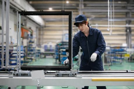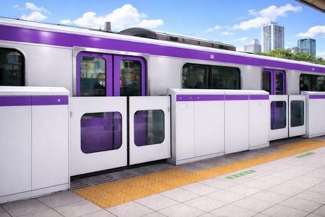 電車のホームドア組立作業