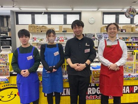 職場環境 【従業員構成】 ■アットホームで和気あいあいとした雰囲気の店舗です。 わからないことや困ったことがあればフォローできる体制が整っていますのでご安心ください。 ■20代~40代の男女ともに活躍中! 学生スタッフも多く在籍中! みんなトレカ販売店のアルバイトは初めてというところからのスタートでした◎ ■トレカ情報に触れながら同じ趣味を持つ仲間と楽しく働ける職場です。 お客様との交流も楽しいという声も♪ 【職場の雰囲気】 個性が活かせる 立ち仕事 アットホーム 長く働ける 自分の都合に合わせやすい 知識、経験不要
