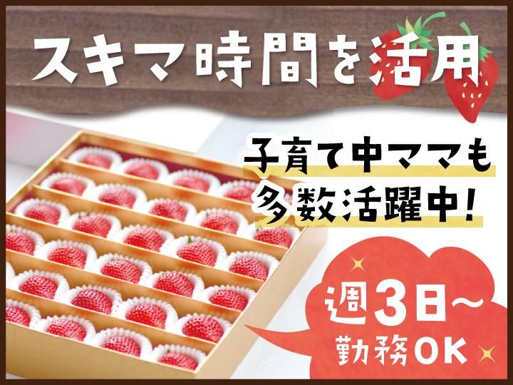 仕事内容 【26年3月中旬~6月末迄の短期ワーク】 \スタッフ全員が未経験からのスタート/ 《未経験OK》新しいことにチャレンジ! 《主婦・主夫歓迎》子育てママ在籍中! 《週3日~OK!》扶養内勤務OK! 《お休み調整可》お子さんの風邪等も対応可! ❏ 仕事内容 ・いちごの仕分け、パック詰め ※手が空いた場合はパックの梱包やいちごの収穫・苗の手入れをお願いします 【同時募集】一般事務:エクセル・ワードを使った簡単な入力作業等 ※手が空いた場合はいちごの仕分けやパック詰めをお願いします ・・・・・・・・・・・・・・・・・・・・・・・・・・・・・・・・・・・・・・・・ ▼歓迎要件 :土日祝出勤できる方歓迎 :一般事務経験者歓迎 :無資格歓迎 :フリーター歓迎 :繁忙期の為、残業に協力していただける方歓迎 *主婦活躍中/家事とも両立しやすい環境♪ *20~30代前後の若手も活躍中! *20代から50代まで幅広い世代が 働いている農園です。 【こんな方にもオススメ】 ・いちごの栽培など「農業」に興味がある ・細やかなコツコツ作業が得意 ・黙々と取り組める仕事が好き ・子育てに理解のある環境で働きたい ・扶養内ではたらきたい 【こんなご経験をお持ちの方にもぜひ】 :ピッキングスタッフのご経験 :ライン作業など軽作業のご経験 :検査スタッフなど工場作業員のご経験 :倉庫作業員のご経験 etc ※モクモク・コツコツ系の 各種作業経験・職務経験を 活かしやすい職場です!! ◯。当農園について ━━━━━━━━━━━━━ 真心農園は美味しいいちごを この手でイチから作りたいという 熱い想いのもと、8年前に立ち上げられた 埼玉県東松山市のいちご農園です。 ICTを活用した環境制御をはじめ 各種先進技術を活用して栽培した 高水準のいちごが当農園最大の特徴です。 私たちがこうした先進技術を駆使するのは 手間を惜しまず育てたいちごが、 この先に待つお客様の日常に 少しでも彩りをもたらせられればと 願っているからこそ。 食べる人も、贈られた人も 私たちのいちごを通して、 特別な時間・幸せな時間を 過ごしてもらえるように… そんな想いを大切にしながら 日々私たちは栽培に取り組んでいます。 [HP]https://www.manacocoro.jp/ ・・・・・・・・・・・・・・・・・・・・・・・・・・・・・・・・・・・・・・・・