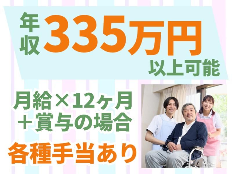 月給245,500円以上 給与詳細 ※基本給・固定残業代・一律手当の総額 基本給:月給 18万円 〜 固定残業代:あり 1ヶ月あたり2万5500円 〜(固定残業時間:1ヶ月あたり15時間) 固定残業時間を超えた勤務時間については別途残業代を支給する 【一律手当】 全員に一律で支払われる通勤・皆勤・家族手当金額:なし 全員に一律で支払われるその他手当金額:あり 1ヶ月あたり4万円 一律手当の内訳 *処遇改善手当:15,000円 *資格手当:20,000円 *職責手当:5,000円 *夜勤手当別途支給(5,000円/回) *昇給あり(年1回9月) *業績賞与あり(年2回:前年実績) *交通費規定支給(30,000円/月上限) 【給与例】 給与例 <月収例> 月収265,500円(月給+夜勤4回の場合) <年収例> 年収384万円以上可能(月収×12ケ月+賞与の場合)