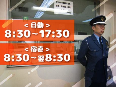 勤務時間 実働時間:8時間/日 平均勤務日数:1ヶ月あたり16日~20日 <日勤 8:30~17:30> *休憩1H/実働8H <宿直夜間 8:30~翌8:30> *休憩8H/実働16H (休憩中に食事や仮眠など可能) *夜勤ワークが初めての方でもご安心を! 丁寧な研修体制用意しております◎