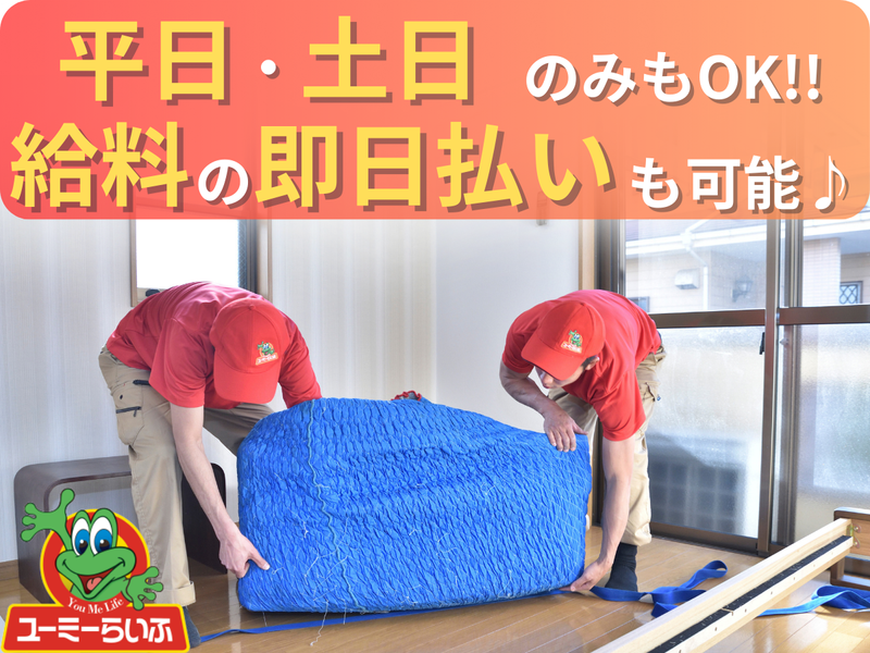 仕事内容 引越し荷物の ・荷造り ・荷ほどき ・トラックからの積み下ろし など、家財の運搬作業をお願いします♪ 2~5名のチーム制での作業です。 ◇1日の業務の流れ ・事務所に集合、資材などの準備をして出発 ↓ ・現場まではドライバーさんが運転します♪ ↓ ・引越し作業(1~3件程度) ↓ ・帰社、明日の現場の準備 ↓ ・1日の業務終了!