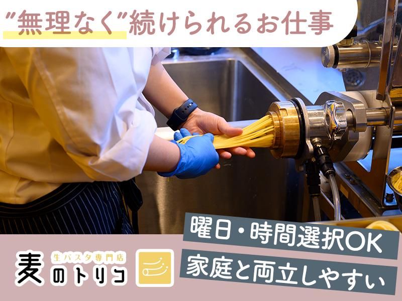 仕事内容 『麦のトリコ』店舗でお客様においしいパスタを提供するお仕事です★ ▼具体的には… ・注文の受付/会計 注文はタブレットからお客様自身で♪ ・簡単な調理/盛り付け ・お客様へのご提供 ・掃除 など メインの接客は、 お客様に商品をお渡しする時のみ! 料理の経験はゼロでも大丈夫! どの店舗でも同じおいしさをお届けできるよう、 マニュアルが完備されています◎ ※ホール・キッチンの区別はございません※