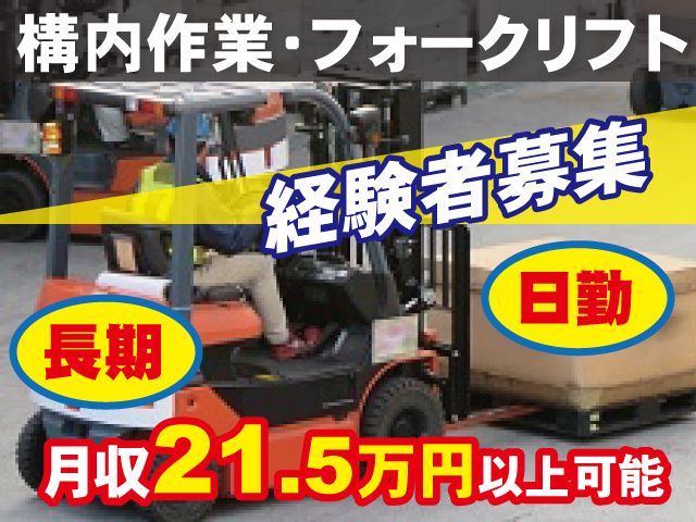 構内作業・フォークリフト作業 冷暖房完備でキレイな環境 土日祝休み/年間休日120日