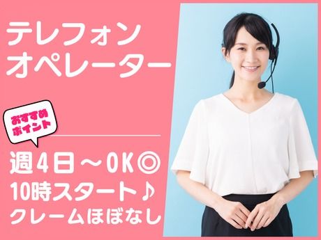 仕事内容 \ここがポイント/ ★週4日~&1日6時間~扶養内OK♪ ★クレームほぼなし&安心の既存顧客対応! ★10時スタートで朝もゆっくり♪ *・。・。*・。・。*・。・。* <仕事内容> \通信会社でのご案内スタッフ募集/ 既存のお客様への新サービス紹介など、 テレフォンオペレーター業務をお願いします。 ▼おまかせする業務 ・企業リストに沿ってお電話発信 ・新サービスやプランのご案内 ・通話内容やお客様情報の入力 ・官公庁・公共関連のお問合せ受電対応 クレーム対応はほぼナシ♪ ご案内先は既に契約済みのお客様なので、 丁寧なご案内ができればOKです! マニュアル完備&先輩のフォローもあり、 未経験の方やブランク明けの方も 安心して始められます◎ ▼ここが魅力 ・週4日~&6時間~勤務OK! ・扶養内勤務やWワークにも対応 ・インセンティブ支給あり(月1~4万円) ・ママさんスタッフも活躍中♪ ・風通しの良い職場で定着率◎ 【こんな方におすすめ】 ・久しぶりのお仕事復帰を考えている方 ・安定して長く働ける職場を探している方 ・電話対応や案内業務に興味のある方 天文館エリアで通勤も便利♪ お気軽にご応募ください! *・。・。*・。・。*・。・。*