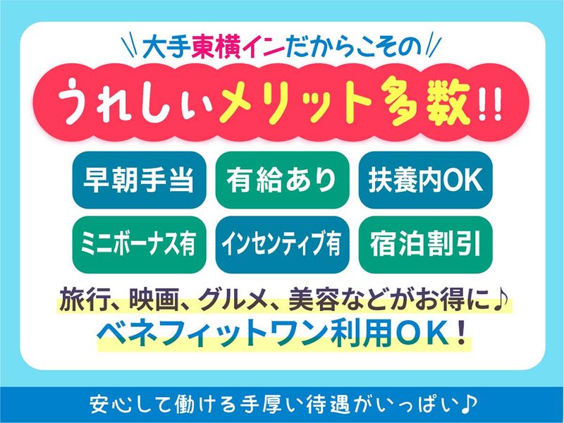 仕事内容 \東横INN 品川港南口天王洲アイル!/ 新規スタッフ採用スタート! セルフサービスの朝食会場にて、 簡単な朝食準備や大皿への料理盛付け、 片付けなどをお任せします! お仕事に慣れてきたら、 「このメニューは人気だから定番にする?」 なんて会話をしながら楽しくお仕事してますよ! 直接お客様から 「美味しかったよ!ごちそうさま~!」 と声をかけて頂けることが嬉しい瞬間! 調理経験や資格は問いません。 簡単な朝食準備や盛付けがメインなので、 未経験の方でも安心して始められるお仕事です。 ∴‥∵‥∴‥∵‥∴‥∴‥∵‥∴‥∴ ✨ アピールポイント ✨ ✅福利厚生充実で安心勤務♪ ✅1人1つ専用ロッカー完備で快適! ✅勤続年数に応じて表彰あり! ⏩\社員特典が充実!/ 話題の「ベネフィット・ワン」を導入! 映画・旅行・グルメからNetflixまで、 全国140万件以上のサービスが 社員特典価格で楽しめます♪ ⏩\長く働ける環境!/ 「永年勤続表彰」制度を採用! 節目を迎えた従業員には 表彰状と金一封を支給。 長期勤務をしっかりサポートします◎ ∴‥∵‥∴‥∵‥∴‥∴‥∵‥∴‥∴