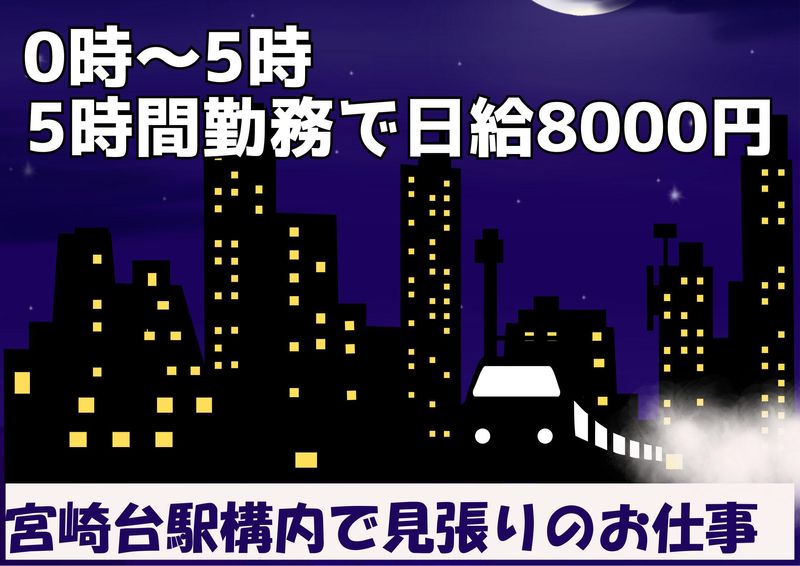 仕事内容 5時間勤務で日給8000円◎ 駅チカ!田園都市沿線エリアでのお仕事! 線路沿いの夜間作業の現場となります。 駅構内での終電後から始発まで 通行人のご案内など、駅に人が立ち入らないように見張りをするお仕事です。 始発までに終えないといけない工事などの見張りなので、早めに業務が終了する可能性もあります。 早く終わっても日給保証! 未経験OK◎ ※詳細は面談の時にお伝えします。 ★日払いOK ※日給から7000円現金先払い ★ビッグボーナス最大15万円支給!! (3ヶ月以内44勤務→10万円、その後無期限 88勤務達成→5万円) ★★スマホで応募から勤務まで完結★★ 応募→WEB面接→シフト申請→お仕事確定→出退勤報告 事前研修は渋谷で3日間、丁寧にレクチャーします。