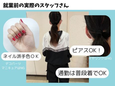 【保険制度】 雇用保険、労災保険、健康保険、厚生年金 待遇・福利厚生 【福利厚生】 ・家電付き寮あり ・社会保険完備 ・週払い制度あり※規定あり ・自転車通勤OK ・レンタル自転車あり(指定駅あり) ・送迎あり ・制服貸与 ・正社員登用あり ・髪色自由(原色ネオンカラー全頭など、過度な染色不可) ・ネイルOK(スカルプ・パーツ・長さ出しは不可) <快適な職場環境> ・24時間空いている食堂あり ⇒定食などメニュー豊富! ・個人ロッカーあり ・休憩室完備 ⇒軽食自販機、ウォーターサーバーあり! <寮費無料キャンペーン中> 2か月間限定!寮費無料キャンペーン! 通常は格安1万円orハイグレード3万円(規定) 寮は入居者の入れ替わりごとに清掃されているので安心!