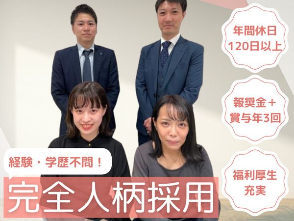 応募資格 \ 人柄重視の採用です! / ※飲食/アパレル/運送/ホテル/サービス業など様々な前職経験を持つ先輩が活躍中✨ 【歓迎スキル・経験】 ◇ 学歴不問 ◇ 未経験・第二新卒歓迎※20代・30代活躍中! ◇ 業界問わず営業経験をお持ちの方 ◇ 接客・販売業務の経験をお持ちの方 ◇ 不動産業界の経験をお持ちの方ももちろん歓迎しています♪ ◇ 基本的なPCスキルをお持ちの方 ◆ 人と関わることが好きな方 ◆ フレッシュな精神で学べる方 ◆ コミュニケーション力を活かしたい方 ◆ 不動産のことをいろいろ学んでみたい方 【応募必須条件】 ◇普通自動車免許(AT限定可) 年齢制限:35歳以下の方 〖例外事由3号のイ・長期勤続によるキャリア形成のため〗