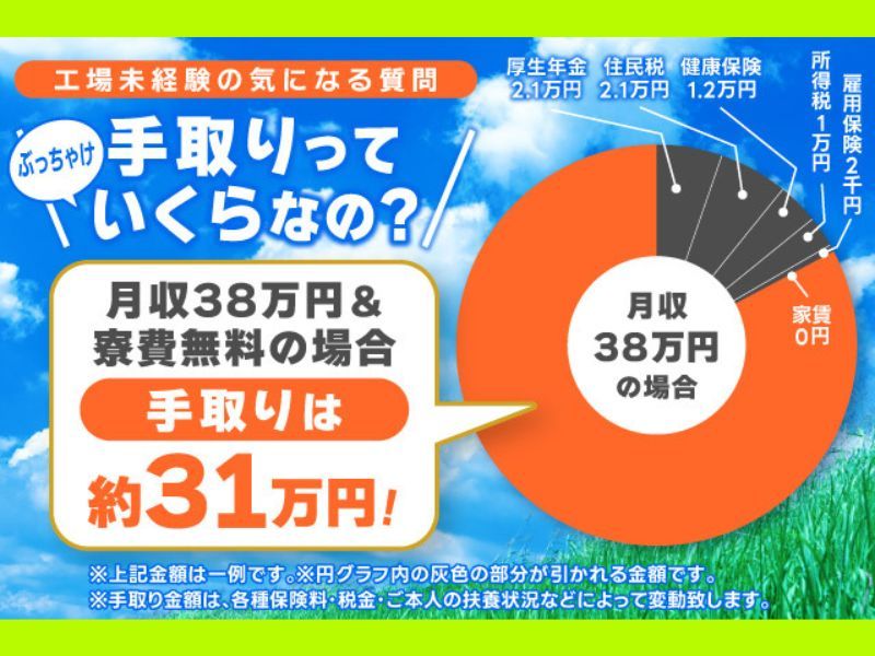 アピールポイント: 有名メーカーで正社員を目指せる◎家具・家電付きの寮に即入寮OK★食事手当として1日600円を永続支給!ご飯が無料で食べられる♪