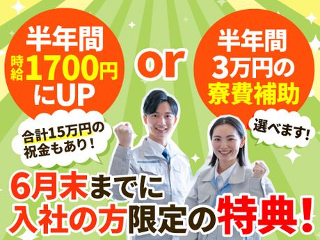 【嬉しい選べる特典!】寮費補助半年間3万円or半年間時給1700円!未経験から最大月収39万以上可能!寮完備◎