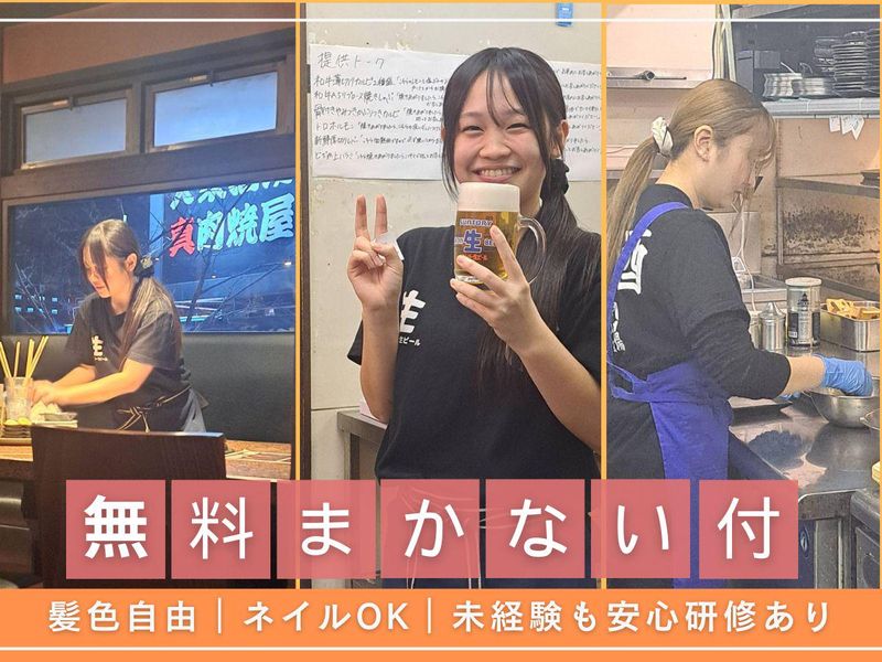 求めている人材 春から新しい職場で働きたい方是非✨ 楽しくわいわい働きたい! 焼肉が好き! な方、一緒に働きませんか? 明るい対応・声掛けができれば大丈夫です◎ ――――――――――――― ◆大学生・専門学生・短大生OK! ◆主夫・主婦パートさん、Wワーカーさん歓迎! ◆週末だけ・ディナーだけも大歓迎! ◆飲食店バイト未経験もOK!