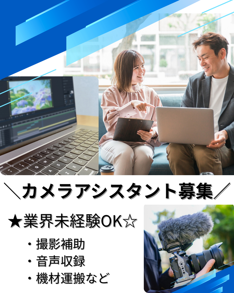 仕事内容 未経験でもテレビ局で働ける! 超・レアワークの登場です⭐ テレビ局でニュース取材に同行し、 撮影のサポートを行っていただきます。 ❶取材準備 ・撮影機材の荷下ろし ・機材のセッティング ・現場での準備作業 ❷撮影サポート ・カメラマンの補助 ・ケーブル管理 ・機材の移動サポート ❸取材同行 ・ニュース現場への同行 ・撮影補助業務 ❹撤収作業 ・機材の片付け ・積み込み作業 ※特別な知識不要 ※未経験スタートOK! ――――――――――――――――――― 【この仕事のポイント】 マスコミ業界に憧れている方注目! この仕事は、全くの未経験でも 「テレビの現場」に立てる仕事です。 ニュース取材に同行し、 実際の撮影現場を間近で体験可能! ✅ 未経験OK ✅ 20代~30代活躍中 ✅ チーム作業中心 最初はアシスタントからですが、 現場で学べることは非常に多く 映像業界に興味がある方にとって、 “入口”として最適なポジション。 日々違う現場、違う取材… 単調な作業ではありません。 「テレビに・映像に関わる仕事がしたい」 その気持ちを形にできます⭐ ――――――――――――――――――― 「テレビの現場で働いてみたい。」 その想いがあれば応募資格は十分です✨ ちょっとでも興味を持っていただけたなら ぜひお気軽にご連絡くださいね! ―――――――――――――――――――