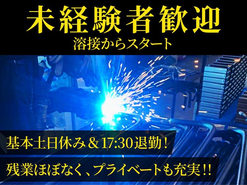 仕事内容 <ほぼ残業なし!>製造職正社員 *経験不問/年齢不問/未経験者歓迎! *溶接作業からスタート *土日休みでワークライフバランス充実! *ほぼ毎日定時退社可能! *平日も自分時間がしっかり持てる! 【仕事内容】 自動車部品などの塗装治具や 運搬用の台車・パレットを注文に基づき 設計、半自動溶接やアルゴン溶接で 組み立てる作業を担当していただきます。 《未経験OKの理由》---------- 〇半自動溶接 ・機械が自動でワイヤー (接着剤のような役割をする金属)を 供給してくれるため、作業が簡単! 〇アルゴン溶接 ・溶接スピードがゆっくりなので、 慌てず丁寧に作業ができる。 ・火花が散らないため安全! *溶接未経験で始めた社員も 「平均1日~2日」で覚えました。 *覚えるまでは近くでサポートしますので 分からないことも気軽に聞ける環境です。 -------------------- 【社員の働きやすさを追求しています】 最近では2台目のレーザー加工機も導入! CAD導入、フォーミングマシンも年内に 導入予定と、設備投資なども積極的に行い、 社員の働きやすい環境整備に努めています。 環境整備には社員の意見も重視! ぜひ気軽に意見を発信してください。