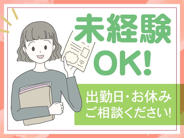 仕事内容 <体験入社あり!> 「業務委託」サポートスタッフ急募! 人と話すことが好きな方にピッタリ! 学校行事のお休みに柔軟に対応しますので、 子育て世代の方も在籍中です! <おすすめポイント> ・未経験者活躍中! ・多数の女性が活躍中です! ・オフィス内は全面禁煙 ※喫煙所有 <お仕事内容> ・配布員さんへチラシの準備、お届け ・ポスティング・配布員希望の方へ お仕事内容のご説明 ・地図のメンテナンスや書類整理 ※業務の際には自家用車を使用して頂きます。 <勤務例> ・週4~5日程度 ・1日3~5時間程度 ※委細面談 ※毎日の出社はありません! <休日について> 業務量が決まった上での 委託となりますので、 仕事のご進捗によって 出勤日数は多少変動いたします。 <アドポスについて> アドポスはお客様からお預かりした チラシを各ご家庭のポストに お届けする「ポスティング」の会社です。 <コロナ対策実施中> ・出社時検温、うがい、手指消毒の徹底 ・常時オフィス内の空間除菌 ・面接スペースへの飛沫防止アクリル板設置 応募資格に年齢や学歴、経験等は 一切関係ないのでお気軽にご応募ください。