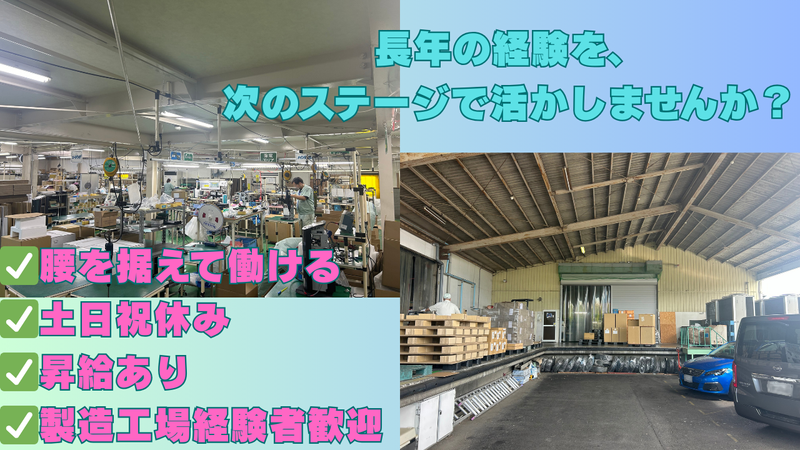 ✅腰を据えて働ける✅土日祝休み✅昇給あり✅製造工場経験者歓迎