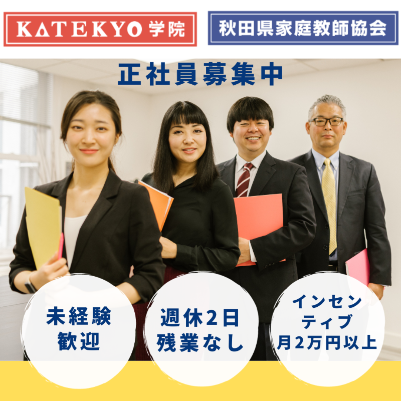 仕事内容: ━━━━━━当社で働く魅力✨━━━━━━ ✅完全週休2日(日曜+火曜+祝)、残業ほぼなし! ✅コアタイム15~20時のフレックス制! ✅転勤なし。腰を据えて勤務可能 ✅売上に応じインセンティブ支給、ノルマは一切なし ✅主任待遇での採用!キャリアパスも豊富! ✅将来、当社FCで独立開業を目指す方も歓迎 ━━━「教えない」からこそ、できることがある━━━ 「教育業界に興味はあるけど、授業をしたいわけじゃない」 「もっとクリエイティブに、組織や仕掛けを作ってみたい」 そんな方にこそ、KATEKYO学院の運営マネージャーはピッタリなお仕事です。 教室という一つの店舗を動かし、生徒の未来を変える「プロデューサー業務」をお任せします。 ━━━具体的なある1日の流れ━━━ 13:00~|教室の空間演出・セッティング 生徒が「ここなら頑張れる」と思える環境を整えます。掲示板の工夫や、季節に合わせた教室の空気作りからスタート。 13:30~|「選ばれる教室」の仕掛け作り(クリエイティブ業務) 「次はハロウィンの自習イベントをしよう」「夏期講習のチラシは、もっと親御さんの心に刺さる言葉に変えよう」など、集客の企画を立案。業者との打ち合わせや、校内掲示物の作成など、あなたのアイデアを形にします。 15:00~|チームビルディング(講師・計数管理) 出勤してきた講師たちの熱量を高めます。「社会人としてのマナー」や「保護者への伝え方」を指導し、プロの集団へと育てます。また、教室の売上や稼働率を分析し、次の戦略を練る「経営者」の視点も磨かれます。 18:00~|コンサルティング(面談・問い合わせ対応) 入塾を検討されている方へのヒアリングや、進路相談。授業はしませんが、生徒の「目標」を決め、そこに向けた「戦略」を立てる、最も重要な教育的役割を担います。 20:00~|一日の振り返りとクローズ 片付けをして終了! ━━━未経験から始められる「教育体制」━━━ 「未経験からいきなり一人で教室を任されるのでは?」 そんな不安を抱く必要はありません。当社では、あなたが自信を持って独り立ちできるまで、最短でも4ヶ月、じっくり半年間の研修・サポート期間を設けています。 ✅ 「1人にしない」保護者・生徒対応 入塾を検討されている方への面談や、デリケートな相談対応。これらを最初から一人で任せることはありません。必ず先輩スタッフが同席し、隣で受け答えをサポートします。先輩の話し方や提案のコツを学んでください。 ✅ 「見て学ぶ」から「やってみる」へ 先生たちの指導報告(生徒の成長記録)は、県内の全校舎から集まります。「他の校舎の先輩は、どんなアドバイスをしているのか?」を確認できる「相互研修」の文化があります。多くの成功事例を参考にできるので、ゼロから悩む必要はありません。 ✅ クリエイティブも「チームプレー」 「チラシや掲示物の作成なんてやったことがない」という方も大丈夫。広告の作り方、キャッチコピーの考え方も、先輩が一つずつ丁寧に教えます。あなたのアイデアを形にする際、常に相談できる相手がそばにいます。 ✅ 県内ネットワークで支える半年間 勤務地は希望の校舎ですが、研修期間中は県内の他校舎へ出向き、さまざまな先輩の仕事術に触れる機会もあります。全員であなたをサポートします。 ━━━キャリアパス━━━ 1年目〜:主任(採用時) 業務:担当校舎の運営管理 給与:月給24万円〜+売上インセンティブ(3万円~/月) 想定年収:350万〜 ※主任でも年収500万円以上可能 3年目〜:係長・ブロック長 業務:複数校舎の統括・後輩育成 給与:月給30万円〜+役職手当+売上インセンティブ 想定年収:450万円〜 ━━当社のマネージャーならではの面白さ✨━━━ 「あなたの色」が教室のカラーになる マニュアルはありますが、それは最低限のルール。どう売るか、どう盛り上げるかはあなたの自由です。教室ごとに雰囲気が全く違うのは、マネージャーの個性が反映されている証拠です。 成果が「数字」で見える 自分の戦略が当たれば、生徒数や売上としてダイレクトに返ってきます。営業や販売職出身の方も熱くなれる環境です。 「資金の動き」を追うことから始める経営管理 難しい財務知識は不要です。まずは目の前のお金の管理からスタートし、徐々に大きな数字を動かす面白さを実感してください。