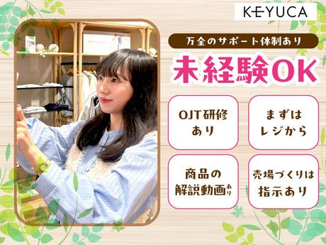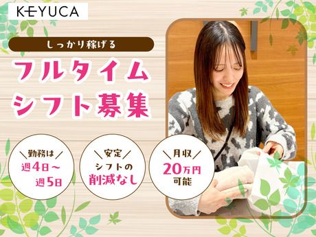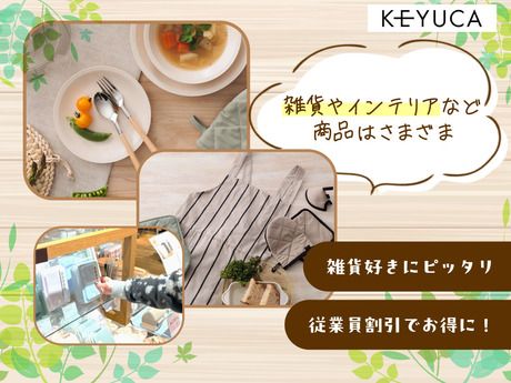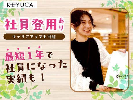 仕事内容 "人柄重視"でお仕事を探しているあなたへ。 「気が付いたら何年も働いてた」 「今は正社員ですけど 10年前はアルバイトだったんです」 そんなスタッフが、 実はKEYUCAでは珍しくありません。 実際に、5年以上働いている方も 多いお店なんです。 そろそろどこかで 安定して働いてみたい。 人間関係がよくて 続けやすい職場を探してる。 そんな方も、きっとここなら 安心できるはずです。 ******************** <スタッフ同士の関係が良好> おしゃれなキッチン用品や インテリア雑貨など、 暮らしを彩るアイテムを販売している ライフスタイルショップKEYUCA。 スタッフの8割は女性で 20代~40代の方が在籍しています。 店内は落ち着いた雰囲気ですが 実はスタッフの多くは“お話し好き”。 商品の話もプライベートな話も するような仲です。 また、個人の売上ノルマがないため 競争なども一切なし。 「お客様にまた来てもらうためには どんな接客をするべきか?」を第一に メンバーで協力しながらお店を回しています。 <お客様との信頼関係も生まれるお店> 来店されるのは、近くにお住まいの方や リピーターさんが中心。 「プレゼント探しに来ました」 「新生活で使うものを見に来て」など、 前向きなお買い物で来られるお客様が 多いお店です。 だからこそ接客も、ただ売るのではなく 会話を楽しみながら ベストな商品を一緒に選んでいくスタイル。 「あなたが見えたから来ちゃった」 「●●さんが言うならこれにしようかな」 そんな風に、自分の接客で また足を運んでもらえたり 選んでもらえたりする瞬間も多く やりがいを感じられる環境です。 ******************** スタッフと話すのが楽しくなる。 お客様が来るのが嬉しくなる。 だから働き続けられる。 そんな環境で働いてみませんか? ―――――この求人のPOINT――――― ■週4~5日勤務OK *シフトカットなし ■月収20万円以上可 *しっかり稼げる ■最短1年で社員登用*キャリアアップ応援 ■土日勤務できる方歓迎 ―――――――――――――――――― 【主な仕事内容】 *接客・レジ *陳列・整頓 *ディスプレイ(売場づくり) *ラッピング *清掃 <販売未経験もOK!> 未経験の方はレジからスタート。 もちろん先輩スタッフが丁寧にお教えします。 レジに慣れたら雑貨エリアの接客、 売場づくりなどにも挑戦。 段階を踏んで成長していけます。 ※売場づくりは細かい指示書あり! 0から作ることはありませんので ご安心ください。 ******************** 【商品について】 KEYUCAの商品は すべて自社で企画・開発。 機能性・デザイン性ともに こだわりのある商品ばかりです。 週1回新商品が入荷するため、 飽きることなく楽しみながら お仕事ができるのも特徴。 一緒に届く新商品の解説動画では 「なぜこの形なのか」 「どんな使いやすさがあるのか」まで 理解できるので、“ただ売る”ではなく “おすすめする接客”ができます。 お客様の「これいいですね!」という反応や キラキラした表情を見ることに やりがいを感じるスタッフも多いです◎ ******************** 【キャリアについて】 契約社員登用制度あり! アルバイトからスタートし、 最短1年で社員登用された実績あります◎ スタッフの中には、 アルバイト→契約社員→正社員 とステップアップして、 今では店長として活躍している方も! 「そろそろちゃんと働きたい」 そんな想いを、ここで形にできます。